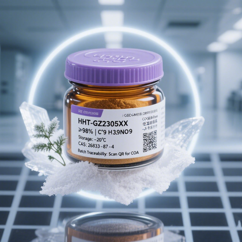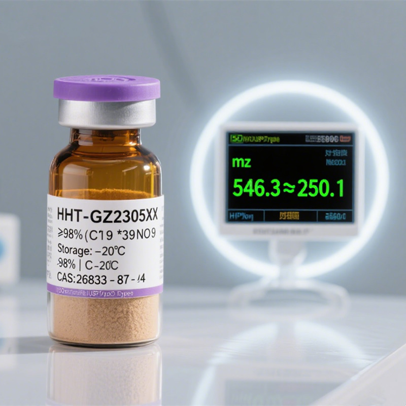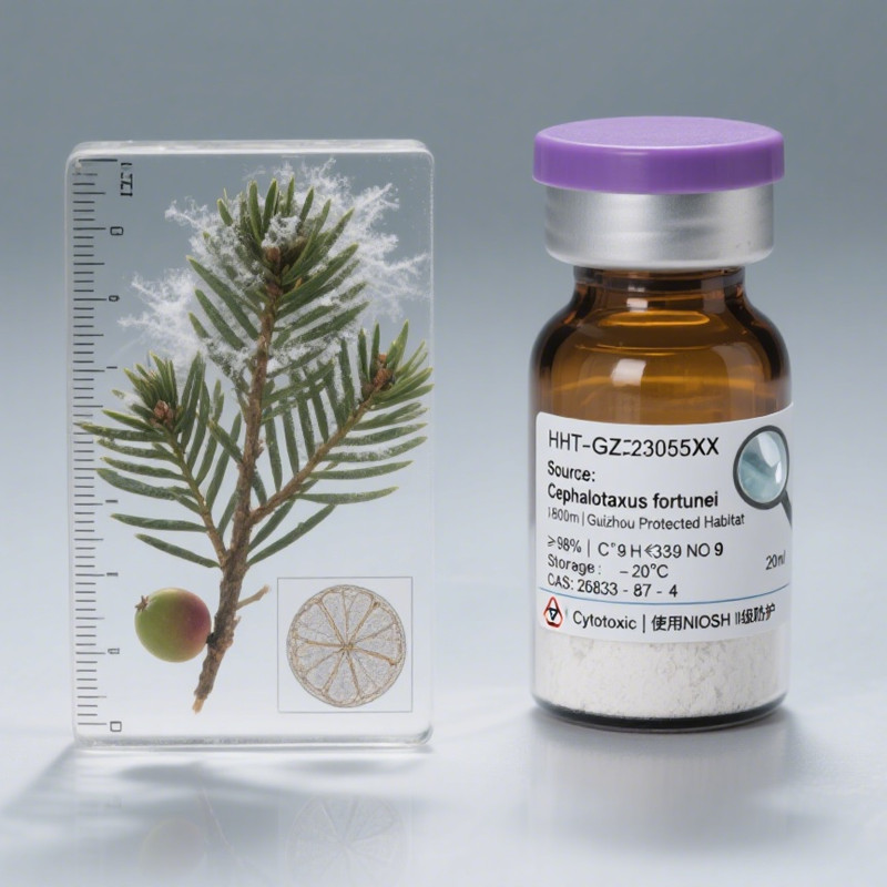 Homoharringtonine (CAS 26833-87-4) is a potent cytotoxic alkaloid isolated from Cephalotaxus species, renowned for its anti-leukemic and anti-solid tumor activity. With ≥98% purity verified by HPLC analysis, this compound effectively inhibits eukaryotic protein synthesis by binding to 80S ribosomes and blocking cell cycle progression (G1 phase), making it ideal for oncology research and therapeutic development. Supplied as a hygroscopic, light-sensitive crystalline powder, it is stored at -20°C and shipped with blue ice to ensure stability. Available in flexible packaging (1mg–10g scales), our product guarantees batch-to-batch consistency and complies with rigorous pharmaceutical-grade standards.